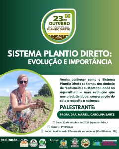 Em comemoração ao “Dia Nacional do Plantio Direto (23 de Outubro)”, teremos a palestra: